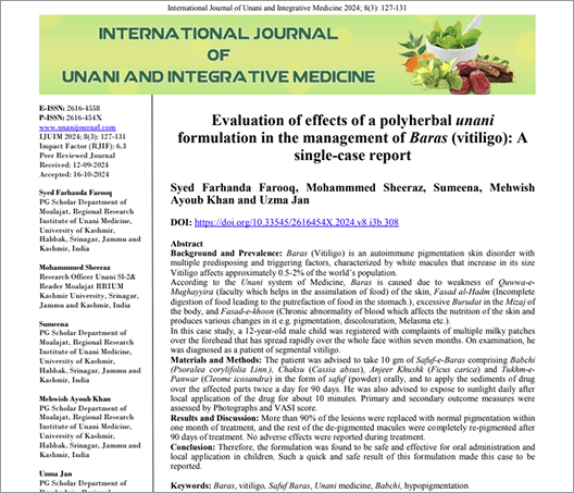 Herbs of Hope: A Comprehensive Evaluation of Polyherbal Unani Formulation in Vitiligo Treatment