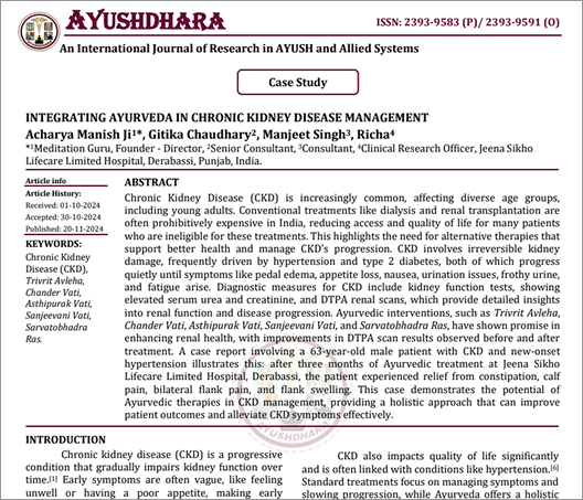 Ancient Wisdom, Modern Care: Integrating Ayurveda for Effective Chronic Kidney Disease Management