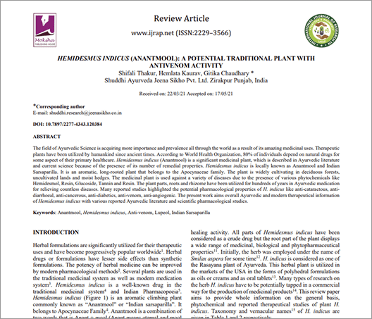 Ancient Root, Modern Cure: The Antivenom Potential of Hemidesmus Indicus