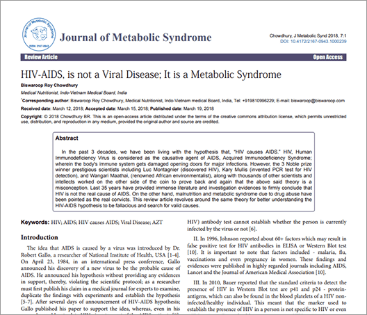 Rethinking HIV-AIDS: A Metabolic Syndrome, Not a Viral Disease